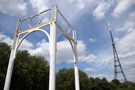 Upon a grassy hill above the terraces, stands a solitary section of cast-iron frame, marking the site of the Palace. Standing anonymously, with nothing to indicate what it is or what it once was, it keeps its remarkable history to itself. Dwarfing and intimidating this sole vertical reminder of the Crystal Palace is the nearby television transmission tower; a monument to the new cult of distraction which superseded the old Victorian notion of spectacle and—so I have always thought—London’s answer to the Eiffel Tower. Curiously, the BBC first began broadcasting its television signal from the Alexandra Palace in North London in the same month that the Crystal Palace self-combusted; an intriguing case of presentiment perhaps?