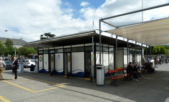 By contrast, the kiosk on Bürkliplatz—to my mind—recalls the purer (socialist) ideals of an earlier architectural modernism that had lost its way by the time Le Corbusier conceived his Swiss museum in the postwar period. It’s a multifunctional open structure, designed to be used by all members of the public. It offers a ticket kiosk, tourist shop, free public toilets, and shelter from the sun and rain. Moreover, it’s clean, bright and airy, and was presumably cheap to construct.