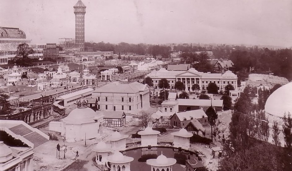 Other scenes included the Australian vineyard, an Indian tea garden, Canadian orchards, New Zealand geysers, South African gold and diamond mines, and a reconstruction of an Irish village. A miniature railway dubbed the ‘All Red Route’ (after the telegraph network that connected all parts of the empire) promised ‘the most wonderful trip ever offered to the public’ and allowed the visitor to see, in a single excursion, the whole of ‘Greater Britain overseas’, with ‘colonials and natives at work.’