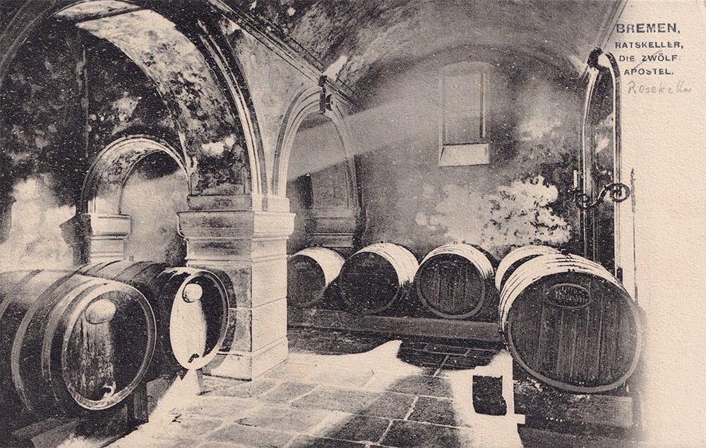The Wine Cellar under Bremen’s City Hall. Postcard from the author’s own collection. Public Domain.